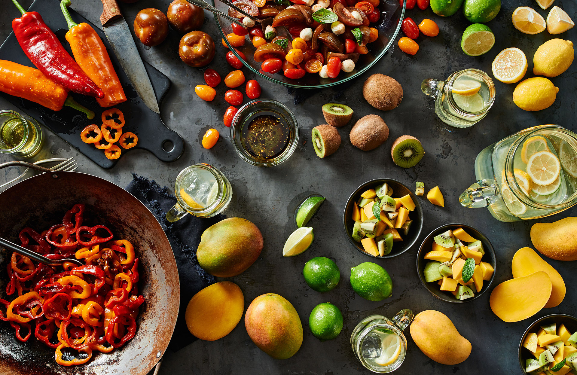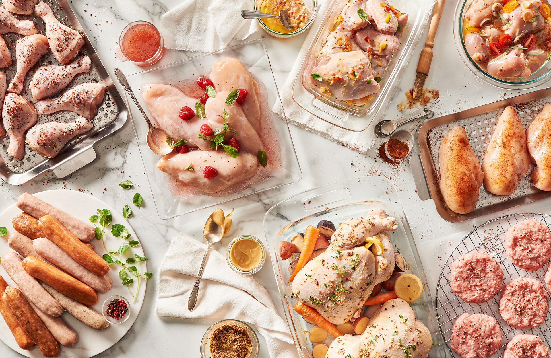 These lifestyle food grouping were created for the MyCostco annual catalogue. Images showcase various product categories and the featured vendor that sell in Costco stores. Images ran as double page full bleed spreads.