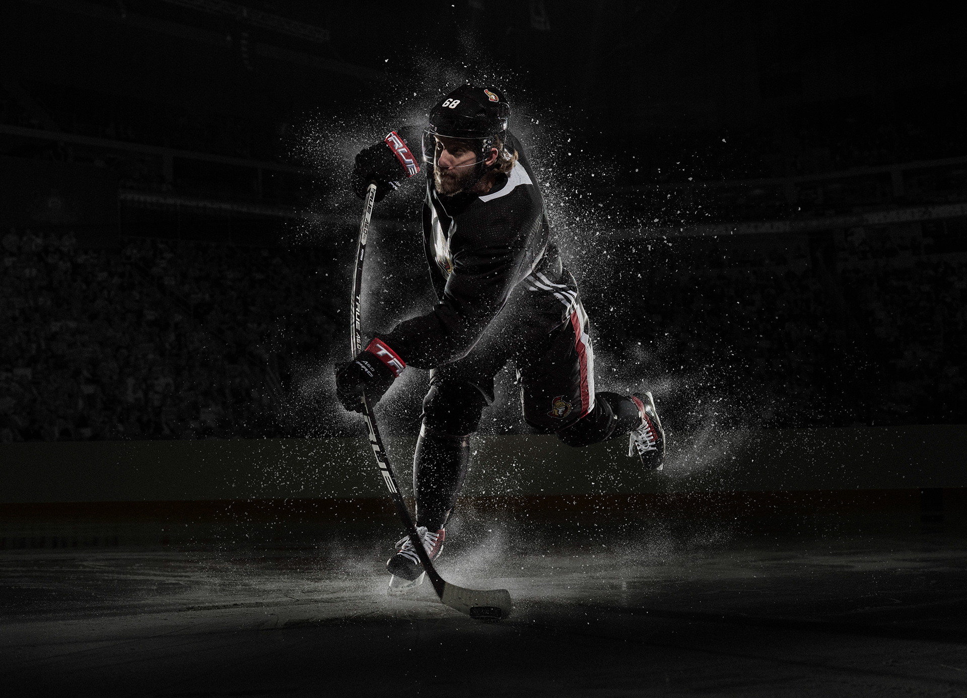 Ottawa Senators #68, Mike Hoffman photographed for TRUE Hockey Gear and the launch of the new A6.0 stick. All digital manipulation done in house.