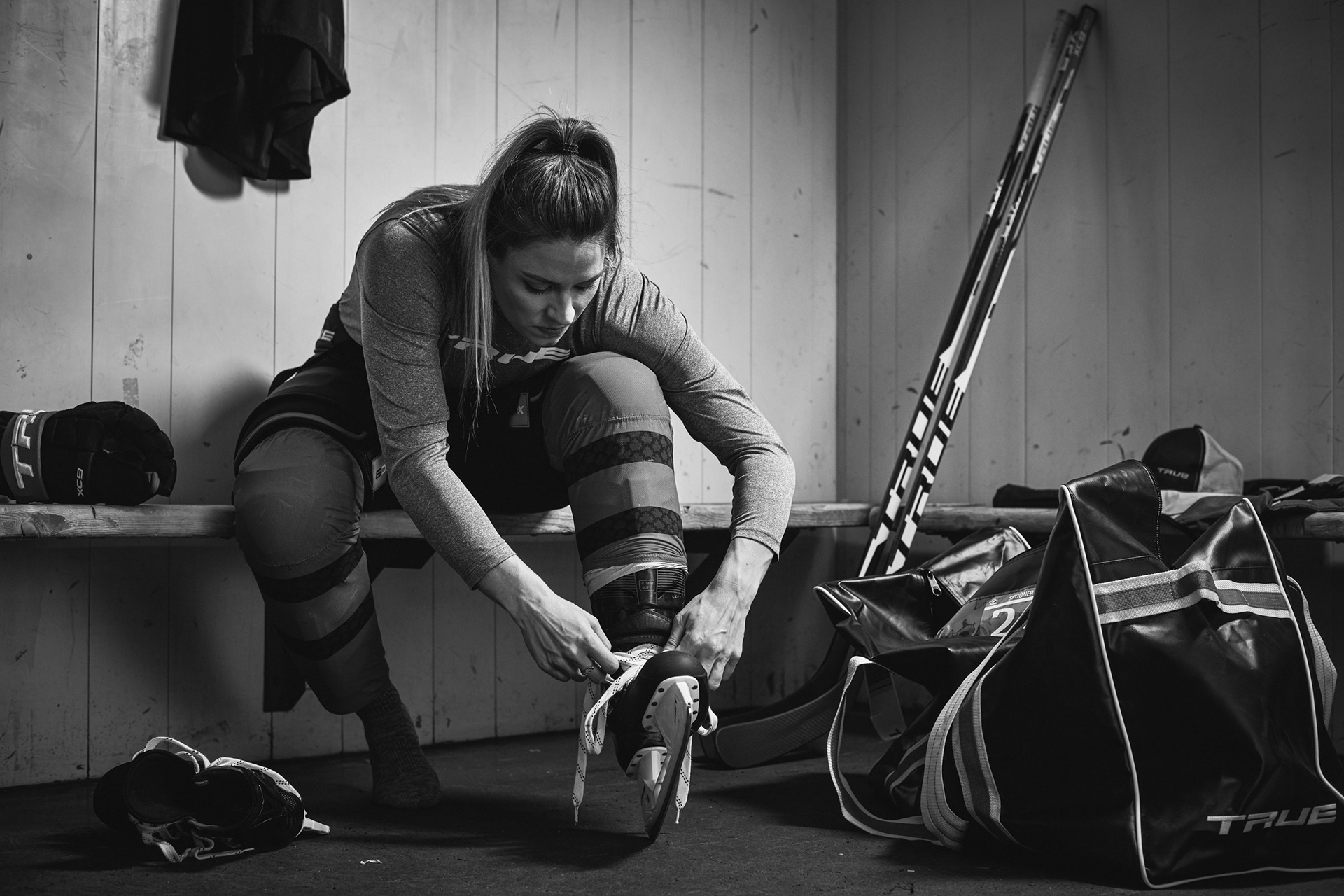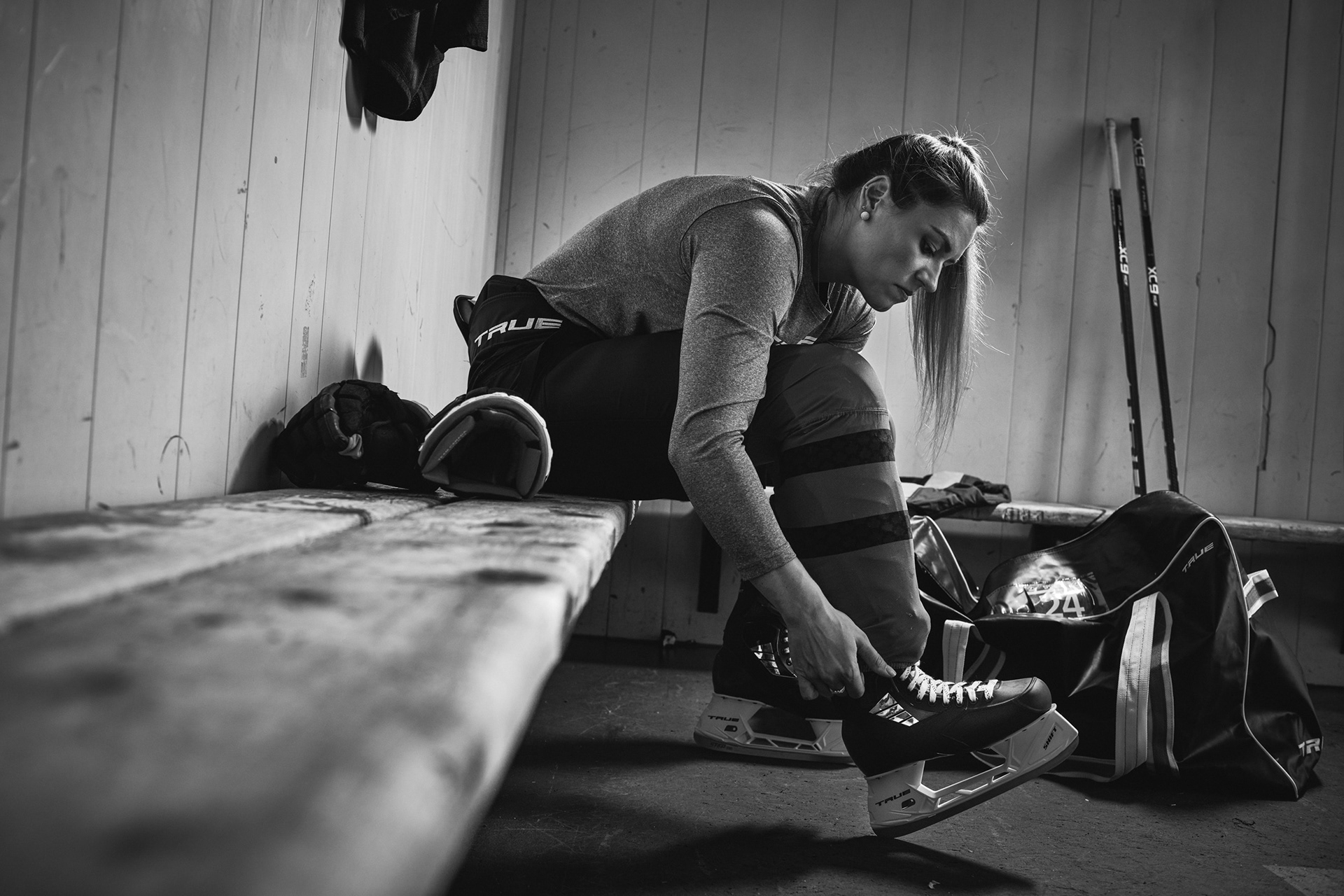 This series of images of Canadian hockey player, Natalie Spooner, 3 times Olympian (Gold medalist) and 4 times World Champion in women's hockey were created for TRUE Hockey to announce her sponsorship with the sports Brand.